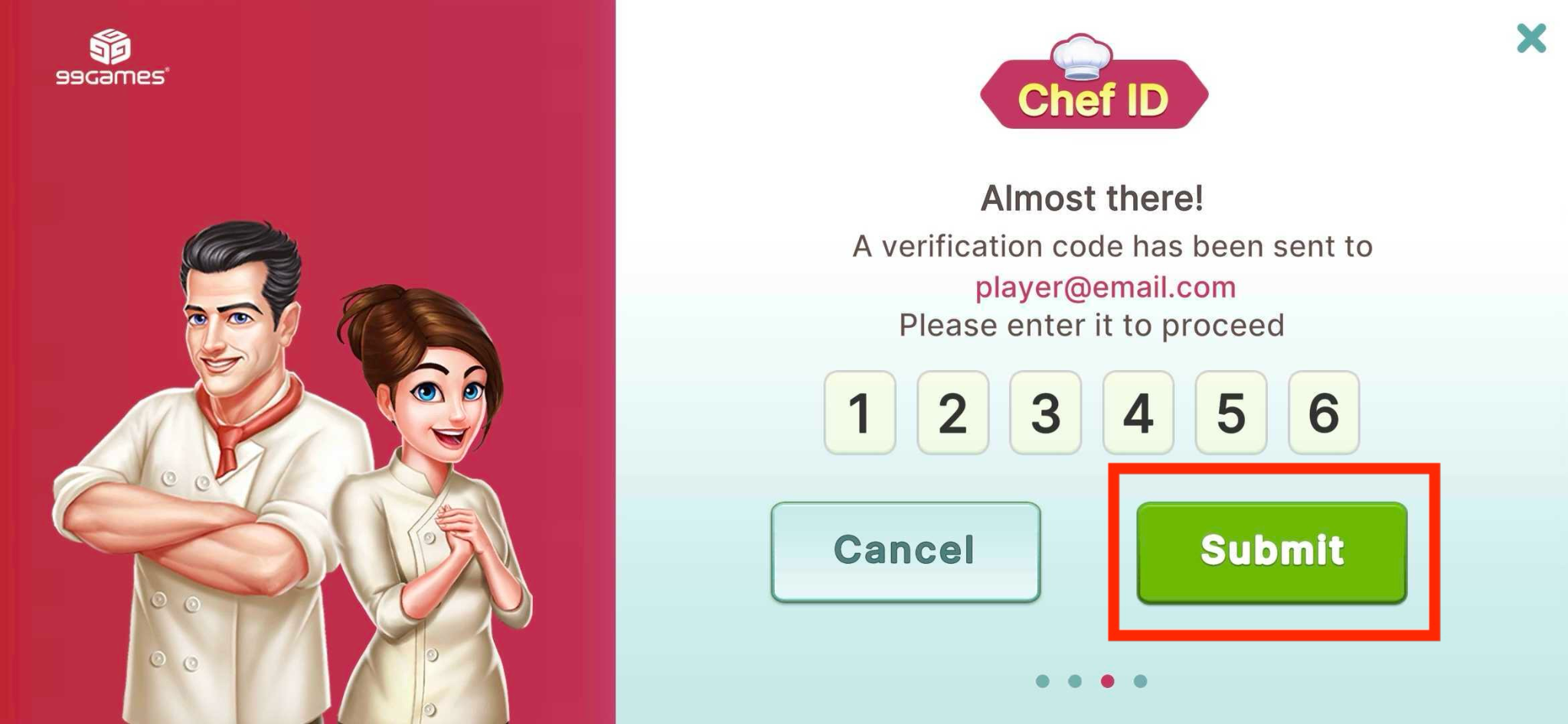 6. Enter the code in the game and tap on the Submit button.